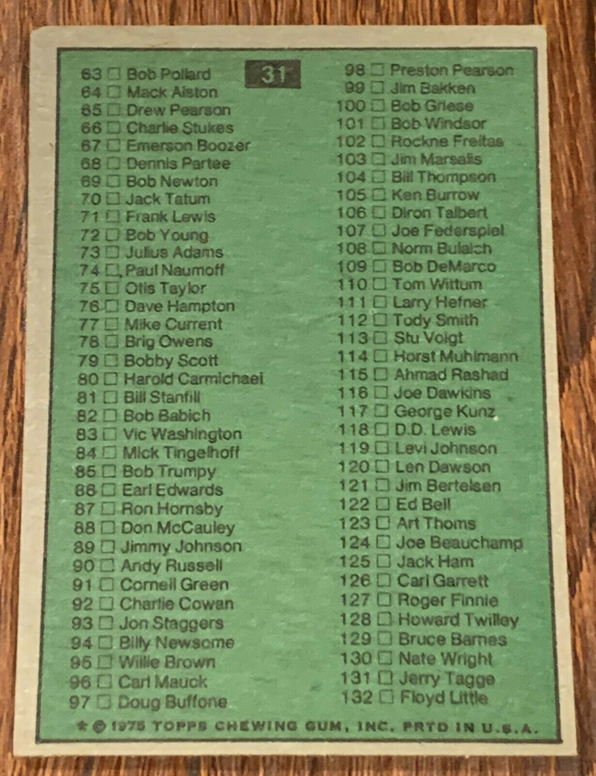 1975 Topps Football 1-132 Checklist #31
