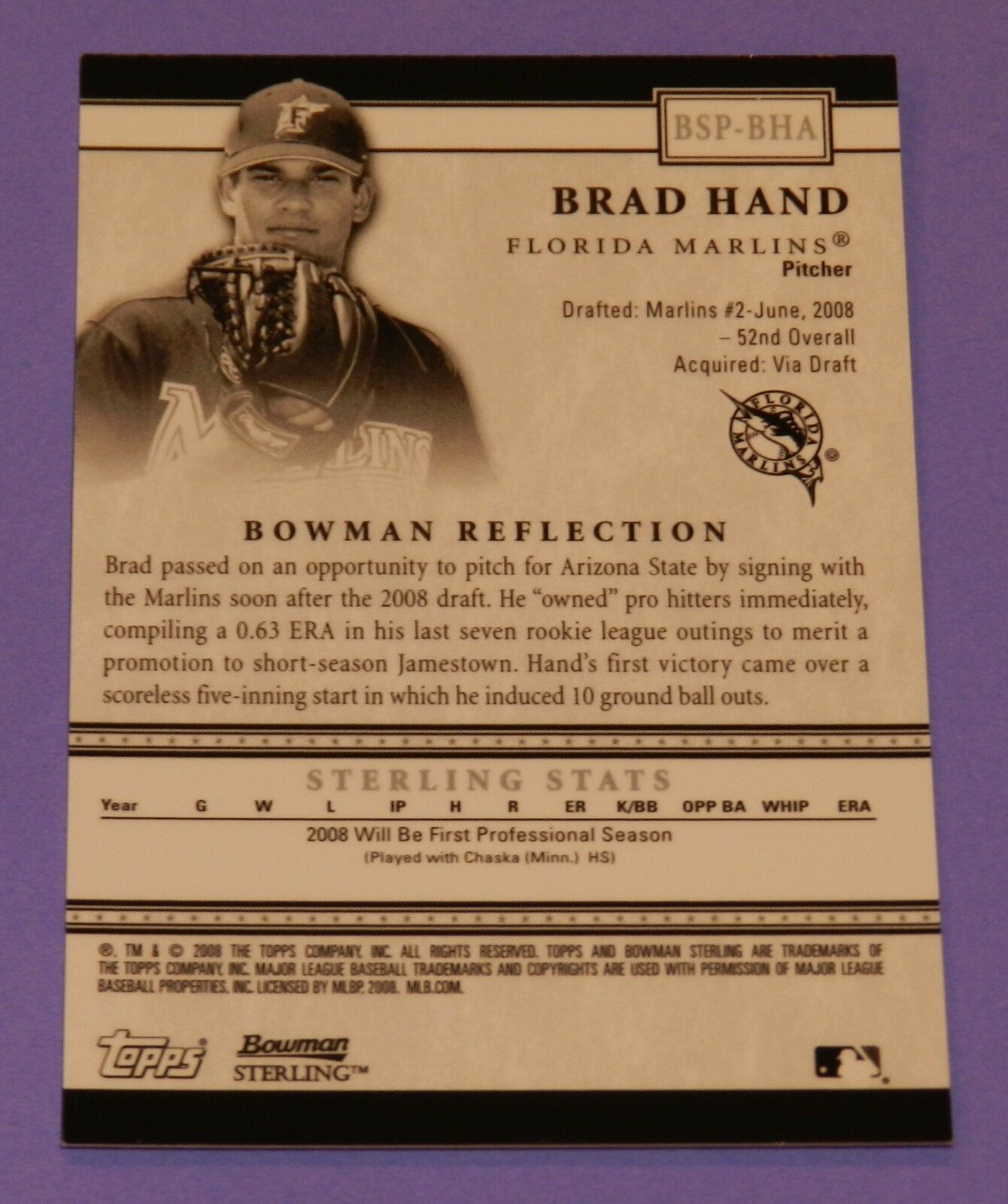 Brad Hand 2008 Bowman Sterling Prospects Autograph BSP-BHA