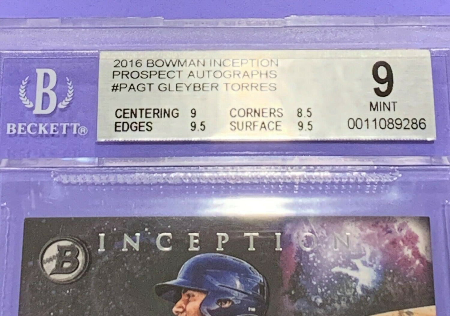 Gleyber Torres 2016 Bowman Inception PA-GT Beckett Graded 9 mint auto 10