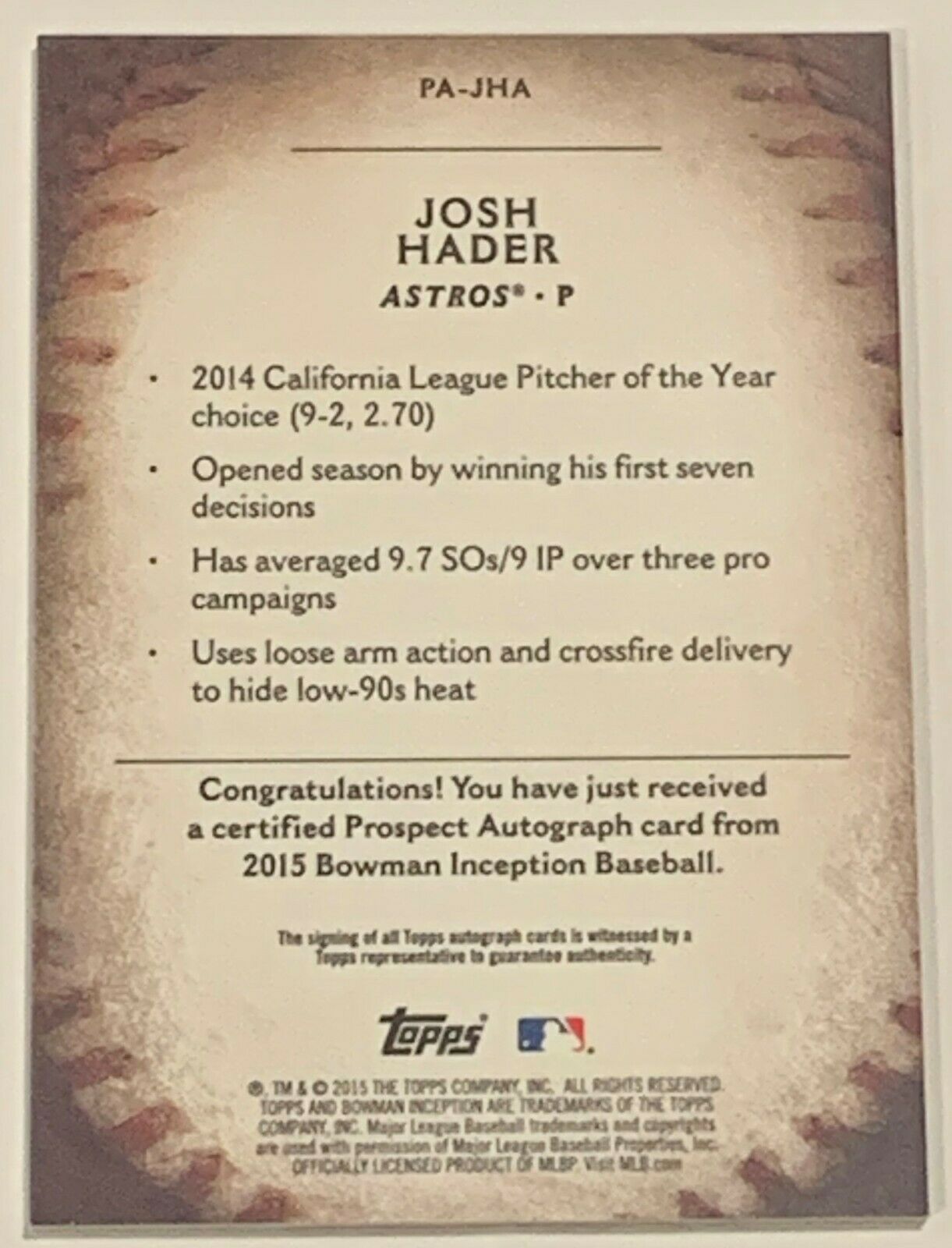 Josh Hader 2015 Bowman Inception Autograph PA-JHA